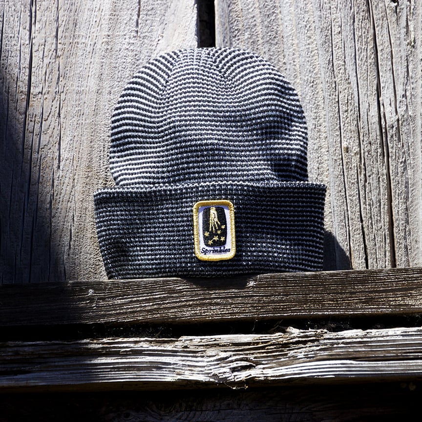 Waffle pattern beanie with sprinkle dust logo patch.