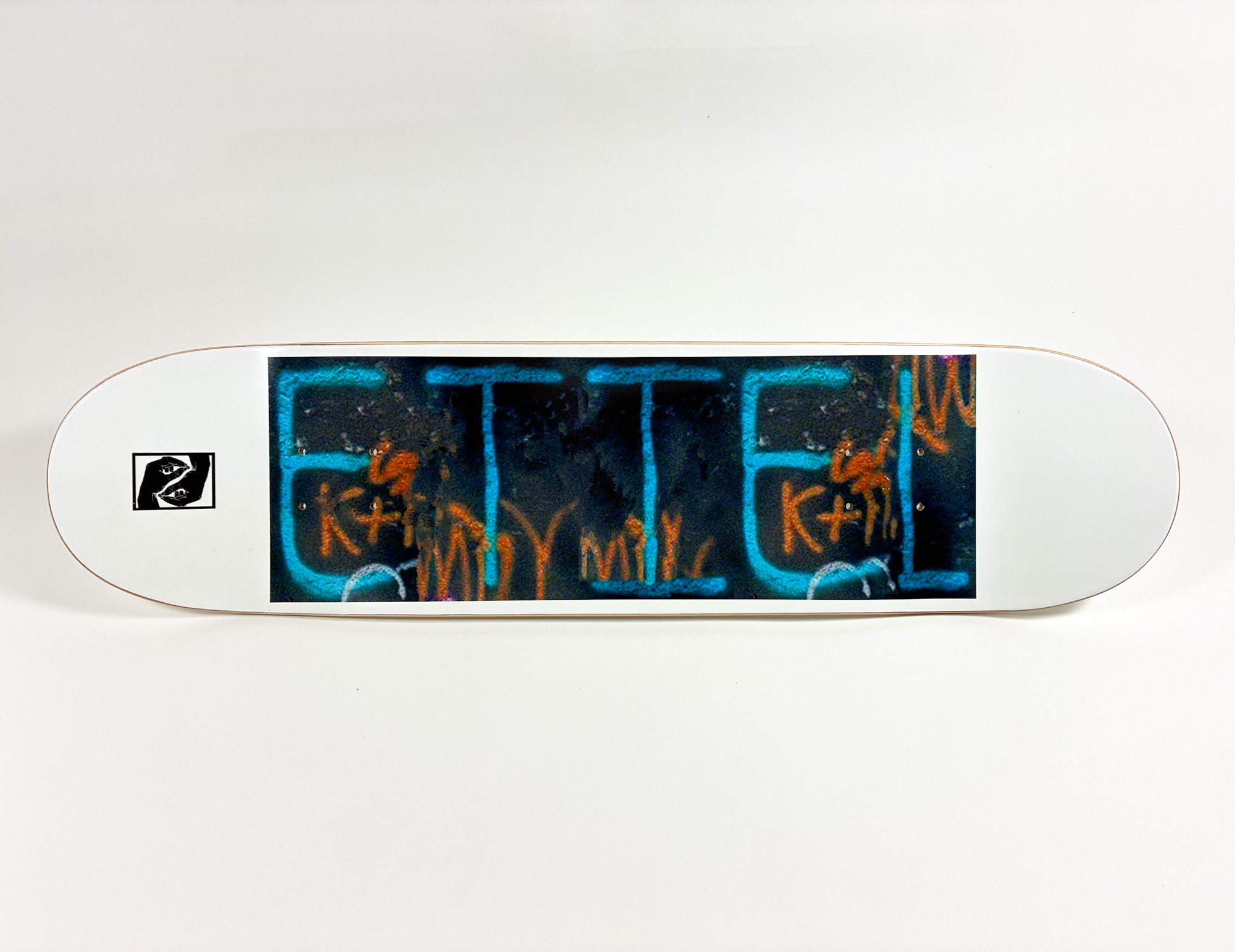 ETIEL PRO board with top name graphic and bottom graphic of Mt. Shasta graffiti portal memories.