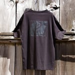 MIdweight black matte ink on black shirt creates a subtle logo tee that sprinkles in the light.